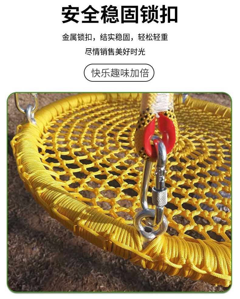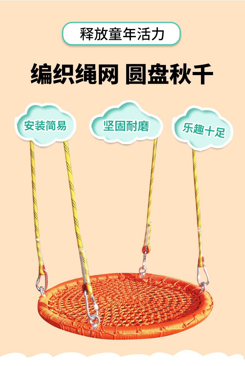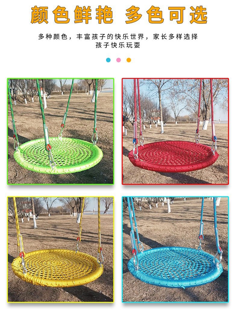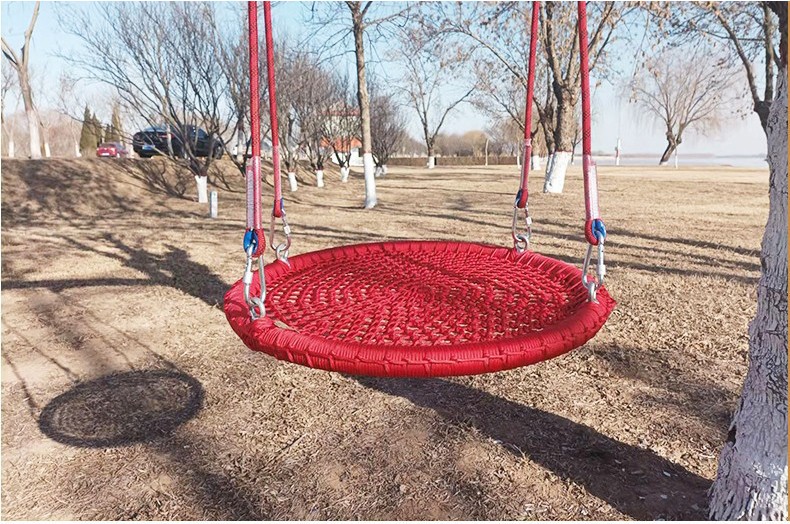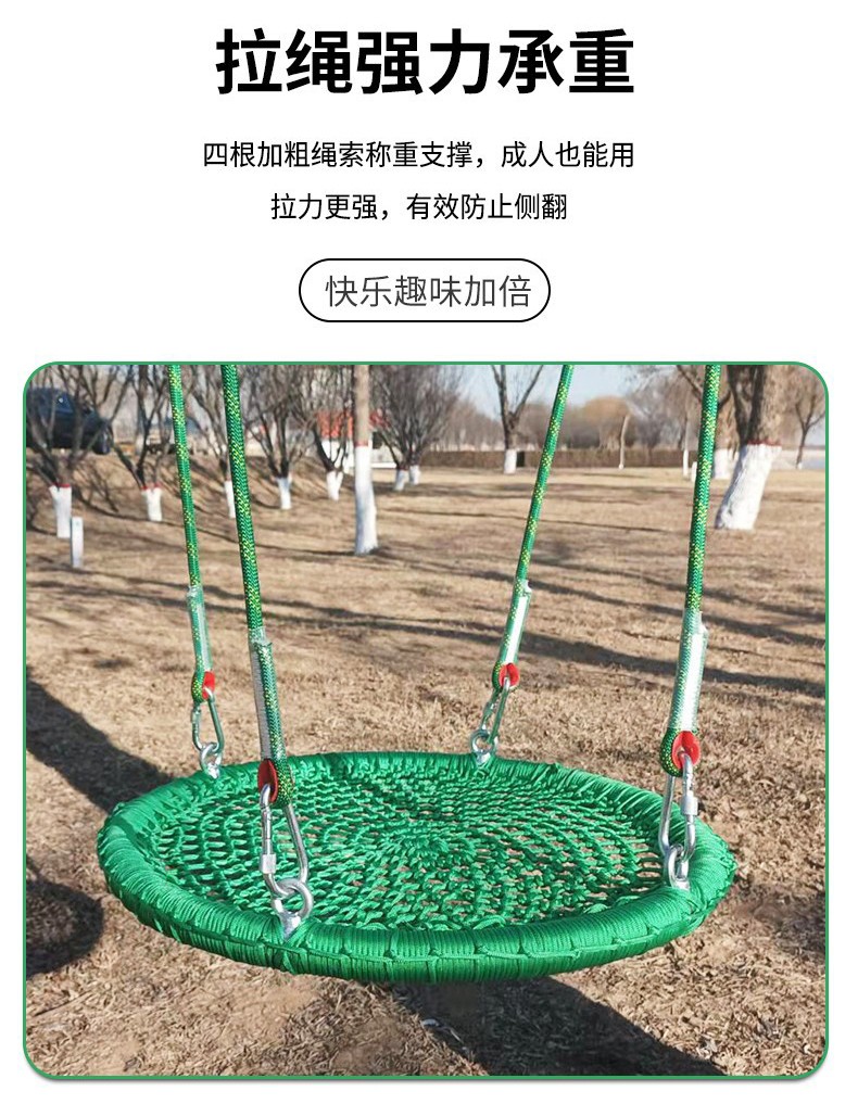 這種公園室外繩編圓盤秋千是今年市場上新出現(xiàn)的一款戶外游樂設(shè)施,也是網(wǎng)紅游樂設(shè)備,特別火,跟網(wǎng)紅橋一樣,大家都愛玩,尤其是