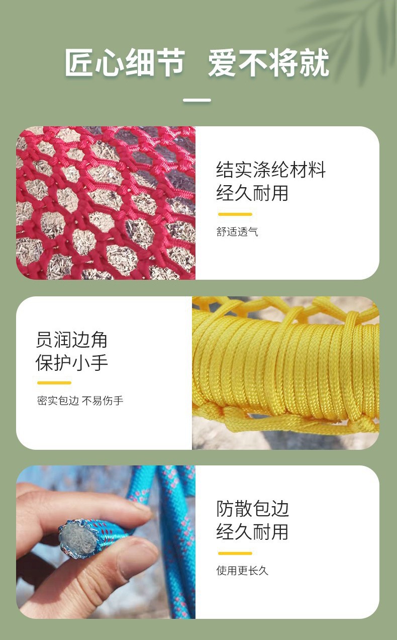 公園室外繩編圓盤秋千占地空間小,成本低廉,可玩性強(qiáng),是公園游樂設(shè)備必備產(chǎn)品。安裝簡單,只需要配備一個(gè)三角鐵架和網(wǎng)繩及秋千坐墊就可以。樣式多樣化,還可以讓3-5個(gè)孩子一起玩,秋千座椅與秋千架之間的連接用的是環(huán)扣的鐵鏈,可以根據(jù)個(gè)人身高調(diào)節(jié)鐵鏈的長度,從而改變秋千座椅的高度。秋千表面都涂上了防銹漆,可以更好的防水,適合戶外使用