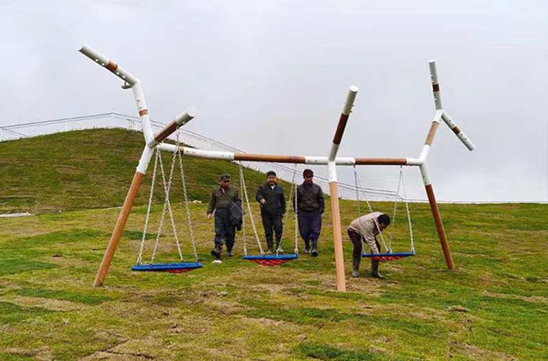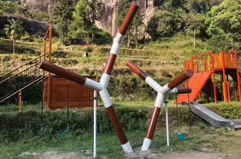 原木網紅秋千以天然木材為主體材料,因為木質游樂設施更親近自然,只選用堅硬的木材,抗腐耐磨刺槐木或者黃花梨,游樂設備的設計是基于樹干和樹枝的自然形狀,打造出有趣的經典游樂設備。