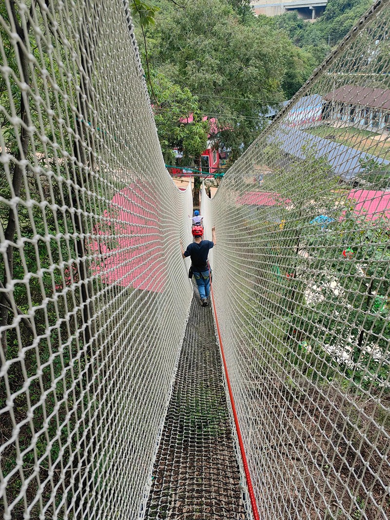最顯而易見有拓展作用的戶外無動力游樂項目就屬繩網(wǎng)類了,繩網(wǎng)項目一般體現(xiàn)形式有攀爬、穿越,甚至有空中項目,所以針對兒童的意志、體能、思維等方面都有很好的拓展訓(xùn)練效果,重要的是此類繩網(wǎng)項目可以很好地調(diào)動兒童自主參與拓展的積極性,不管是團(tuán)隊協(xié)作、還是個體競爭,這些因素都能很好地被調(diào)動起來,游樂屬性對孩子們有著天然吸引力,這一點是顯著的優(yōu)勢。