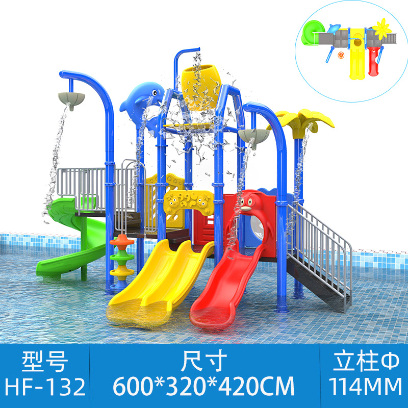 彩虹圈戲水設備采用玻璃鋼、鍍鋅管、包塑平臺、塑料件等材質制作而成,其工藝也與其他設備有所不同。