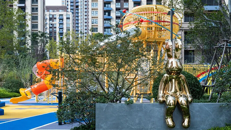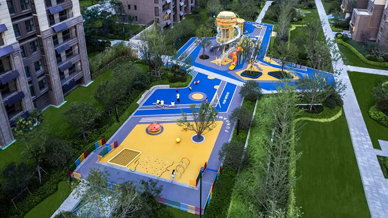 全齡活動(dòng)場(chǎng)地專為各個(gè)年齡段的兒童設(shè)計(jì),配備專門的兒童活動(dòng)設(shè)備,結(jié)合地形和豐富多彩的地面鋪裝,打造富有吸引力和人性化的現(xiàn)代城市社區(qū)活動(dòng)場(chǎng)地。